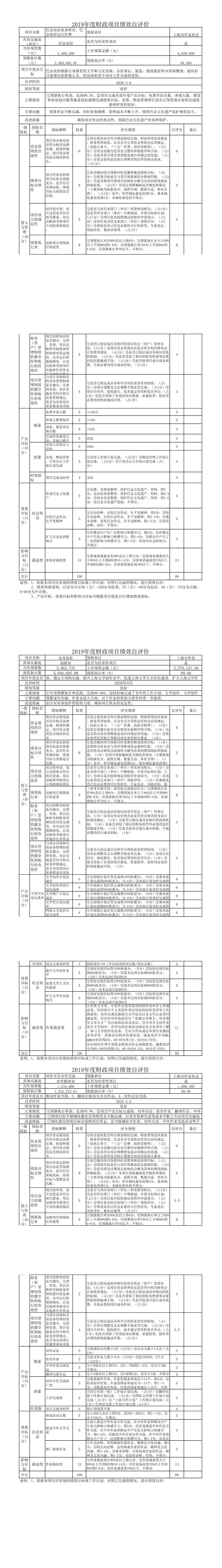 上海文創(chuàng)中心2019年度項目績效自評表