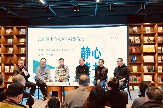 從左至右為李偉長、梁捷、金理、btr、黃德海、方巖 2月12日下午,“靜心讀書”——思南讀書會八周年特別活動在思南文學(xué)之家舉行。復(fù)旦大學(xué)教授金理、經(jīng)濟(jì)學(xué)家梁捷、譯者btr、《思南文學(xué)選刊》副主編黃德海與方巖等五位嘉賓圍繞思......