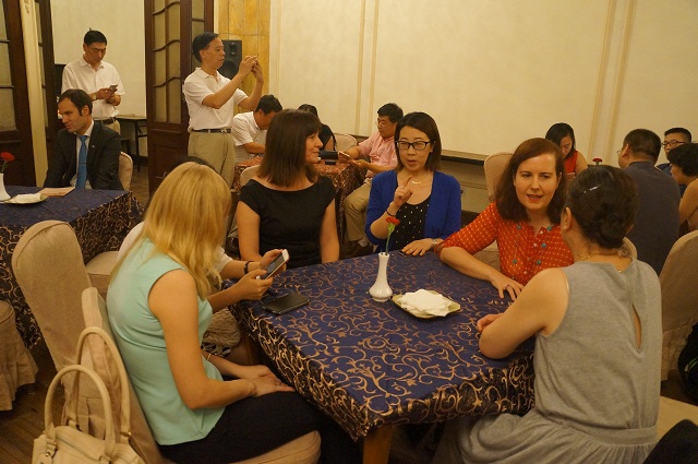中外作家坐在一起,愉快交流。