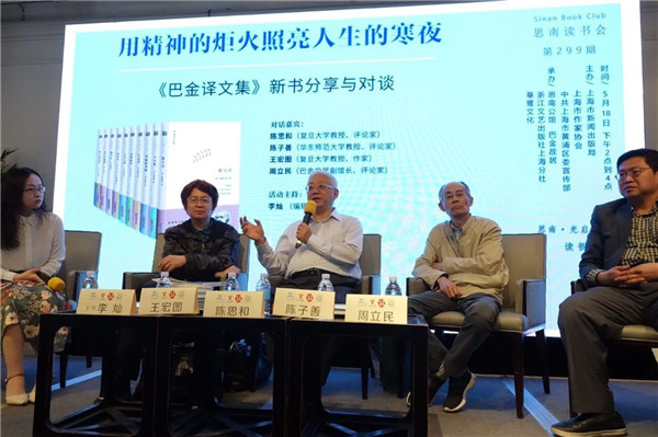 2019是巴金誕辰115周年,由巴金故居策劃,浙江文藝出版社和草鷺文化于今年3月合作推出了全新版《巴金譯文集》,精選巴金一生翻譯的經典譯作。5月19日下午,復旦大學教授陳思和、華東師范大學教授陳子善、復旦大學教授王宏圖以及巴金故居常務副館長周立民來到思南讀書會第299期現(xiàn)場,與讀者共同分享巴金的翻譯與創(chuàng)作。浙江文藝出版社編輯李燦擔任主持。