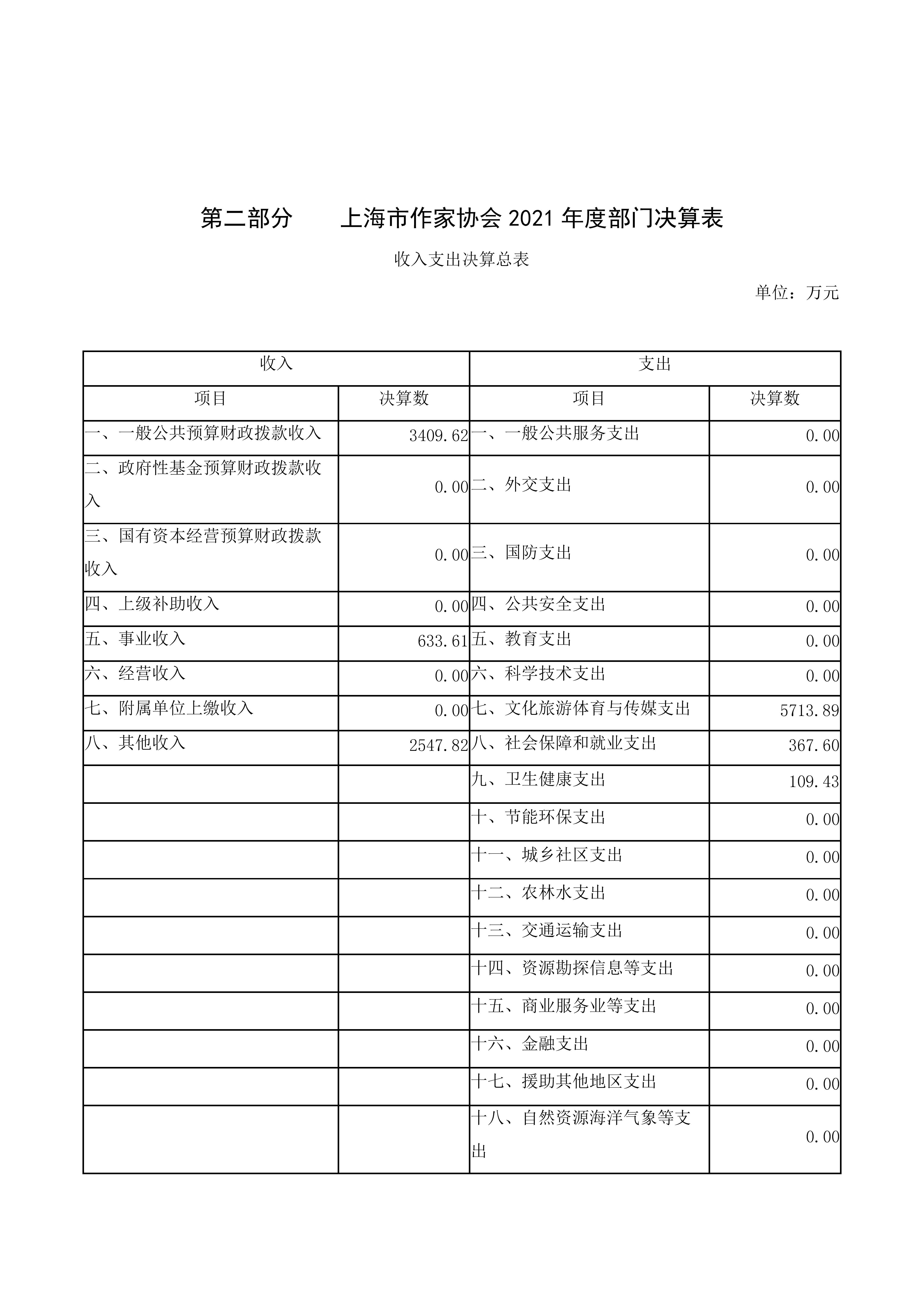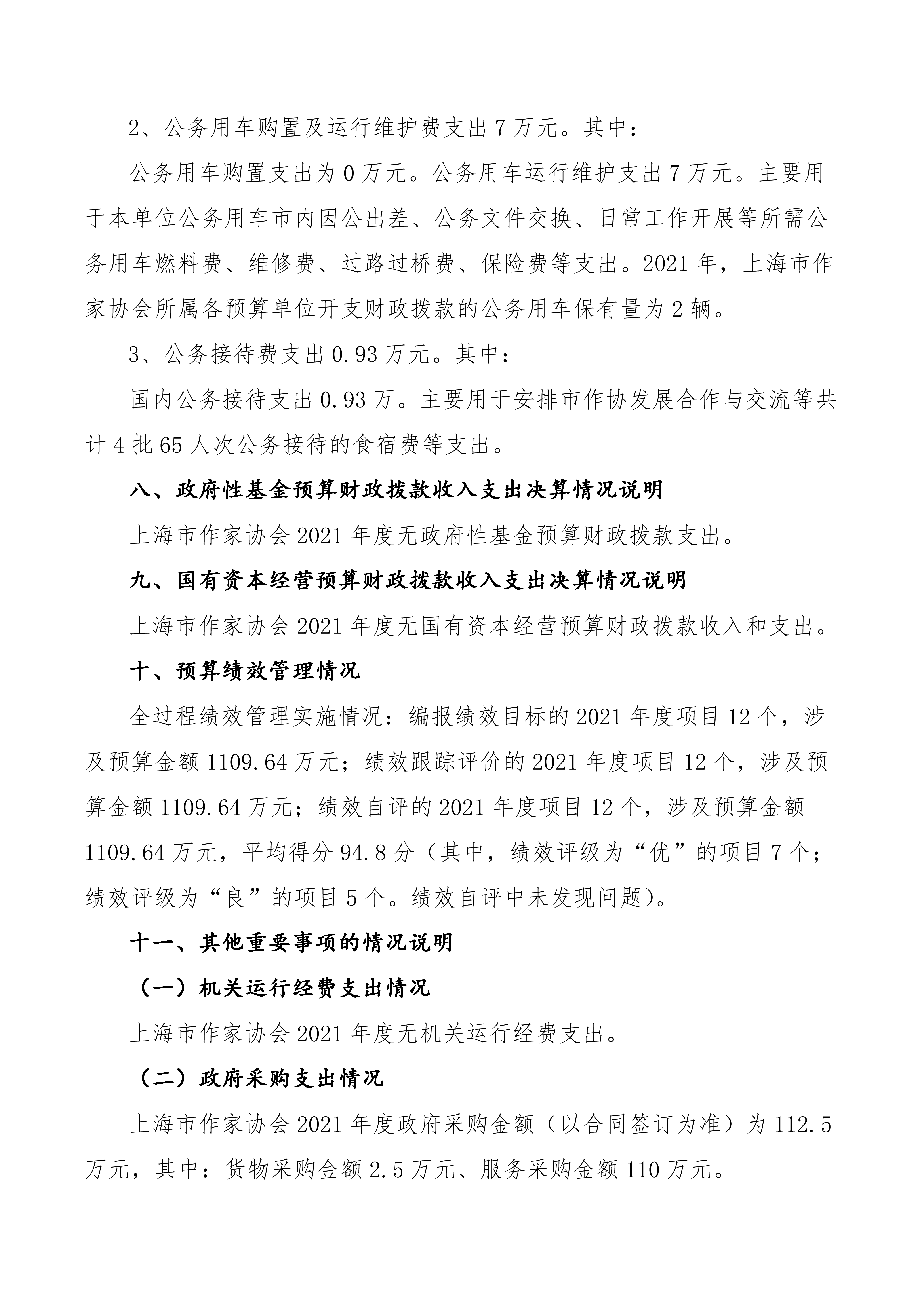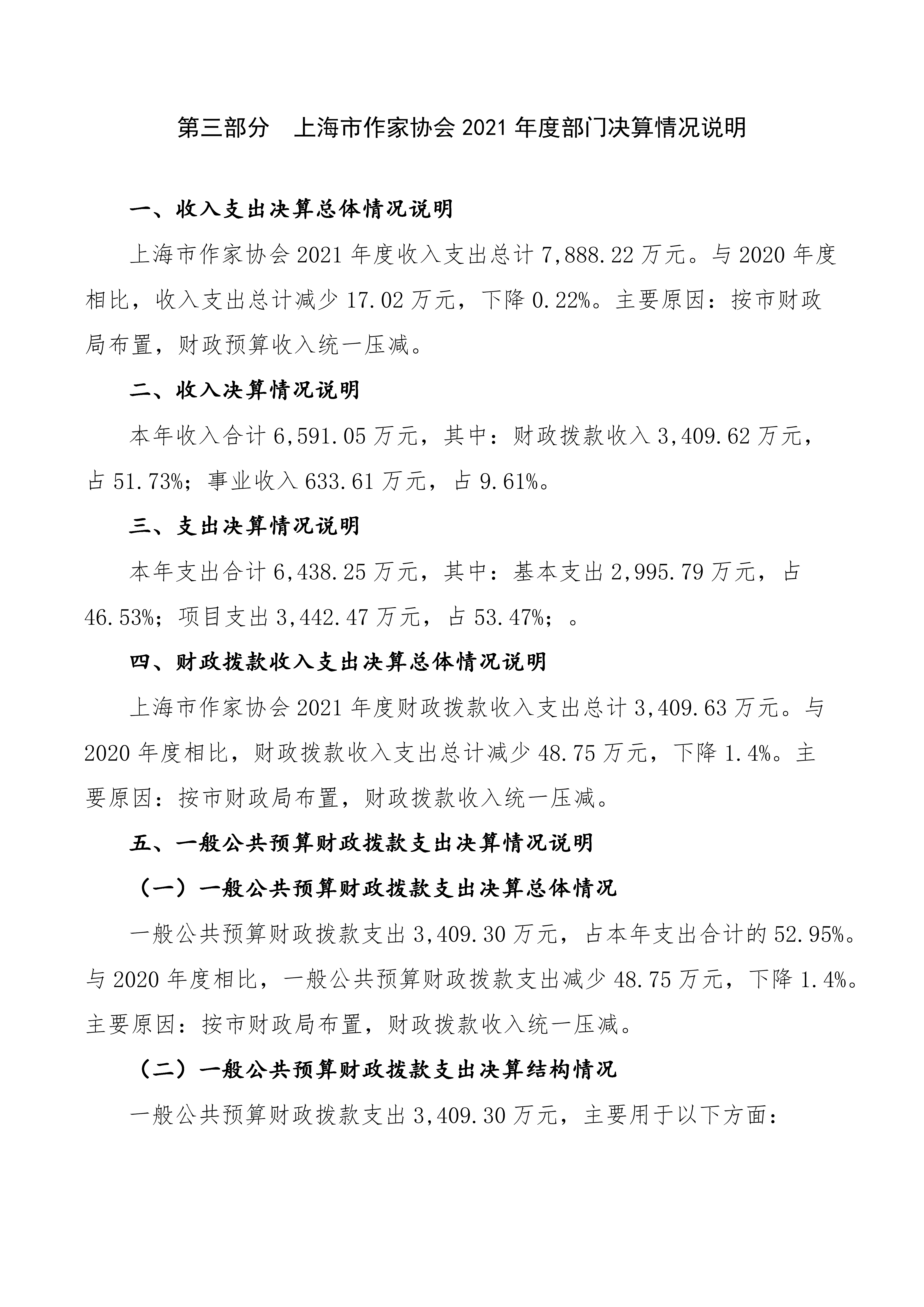 上海市作家協會2021年度部門決算