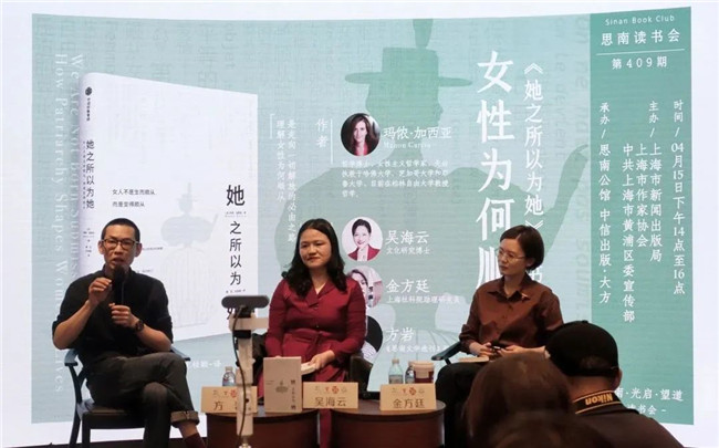 4月15日下午,文化研究博士吳海云、上海社科院助理研究員金方廷、評論家方巖做客思南讀書會409期,三位嘉賓圍繞新書《她之所以為她》,探討日常生活中的性別議題。