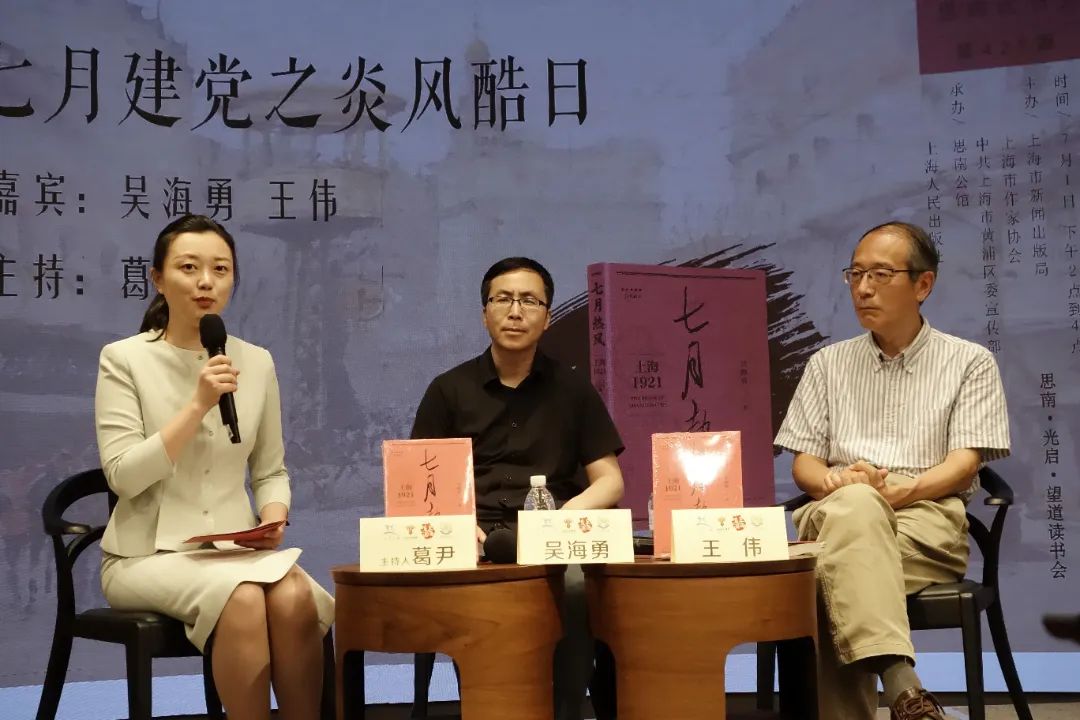 7月1日下午,吳海勇攜其新書《七月熱風》與上海作協副主席王偉做客思南讀書會421期,共同回望102年前一群心懷家國理想青年追逐革命信仰的往事。中共二大會址紀念館綜合管理部副主任葛尹擔任主持。