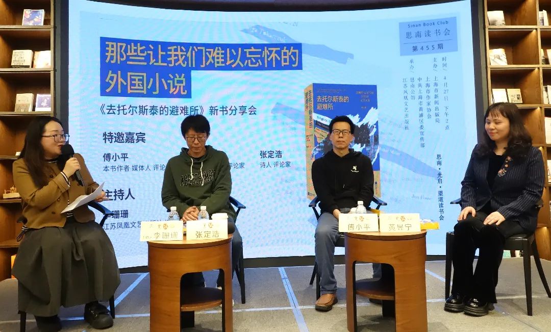 4月27日下午,評論家傅小平攜新書《去托爾斯泰的避難所》做客思南讀書會第455期,與評論家黃昱寧、張定浩一同分享他們的“私人閱讀史”,感受中外文學(xué)的深刻共鳴。本次讀書會由編輯李珊珊擔(dān)任主持。