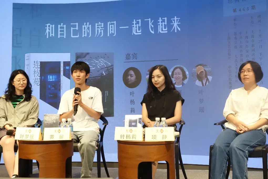 青年作家黃昶、葉楊莉與評論家項(xiàng)靜做客活動(dòng)上半場,編輯葉夢瑤主持。上半場的主題是“和自己的房間一起飛起來”,這是華東師范大學(xué)教授黃平在葉楊莉短篇小說集《連枝苑》的序言中提到的一句話,意在呼吁年輕的寫作者同自己所處的空間一道完成“飛起來”的審美超越。